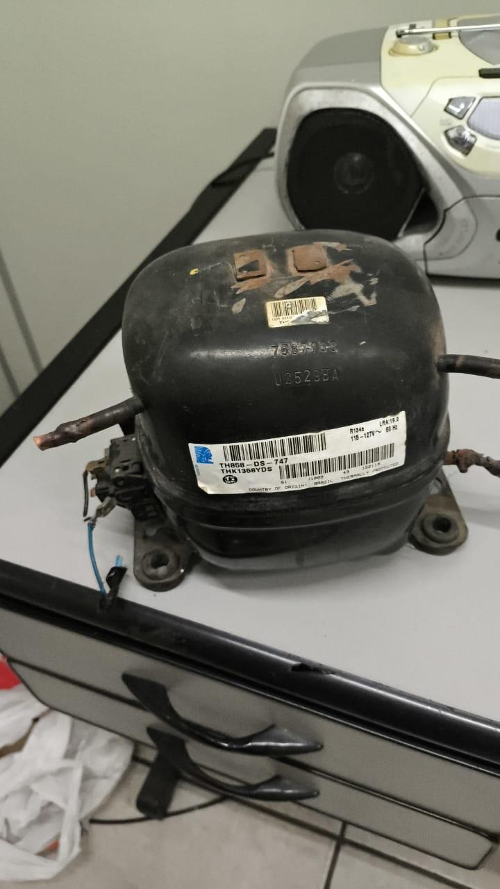 Chegando no bairro, a equipe iniciou o patrulhamento pelas proximidades do local e avistaram um indivíduo com as características informadas pela denúncia do furto a central. Ele foi abordado e com ele foi localizado um motor de freezer. Porém durante a entrevista, o indivíduo com iniciais E.M de 49 anos, informou que também havia furtado 01 Rádio e também fiação de energia da mesma residência, e que vendeu para um depósito de sucatas no bairro Narciso Gomes.